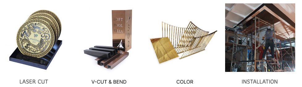 งานดีไซน์หรือสถาปัตยกรรมที่ต้องการความหรูหรา โดดเด่น และเป็นโครงการระดับ Premium ต่างเลือกใช้แผ่นสแตนเลสสี
