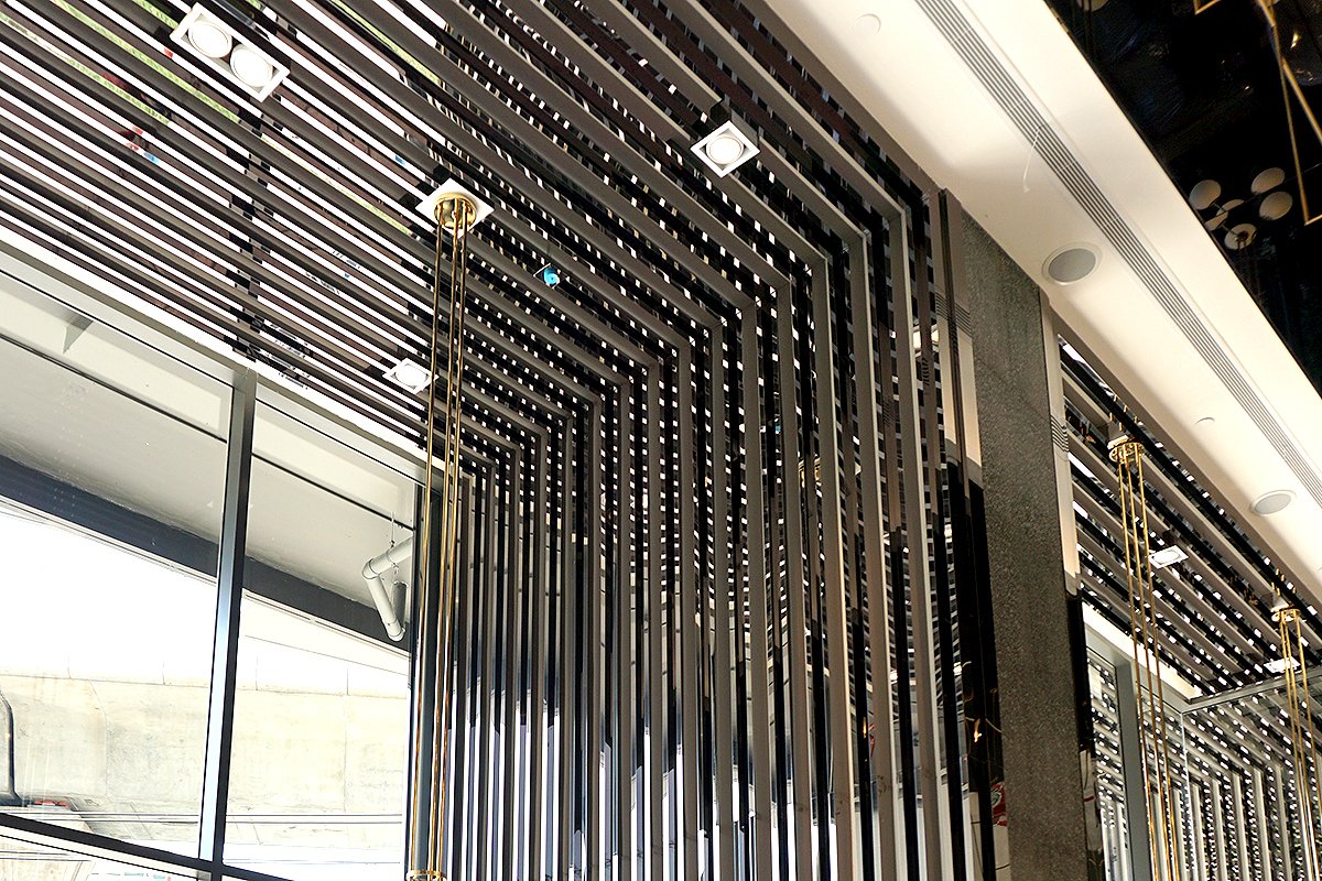 หุ้มตกแต่งเสา ฝ้า และ ผนัง ที่เป็นสแตนเลสสีดำเงา