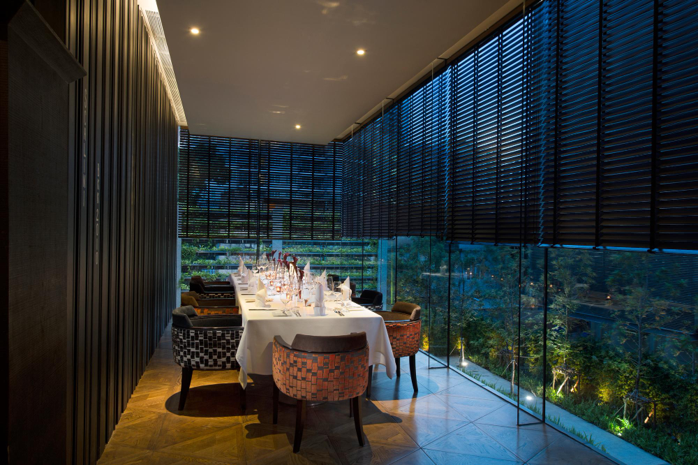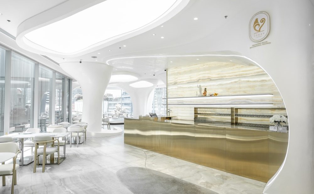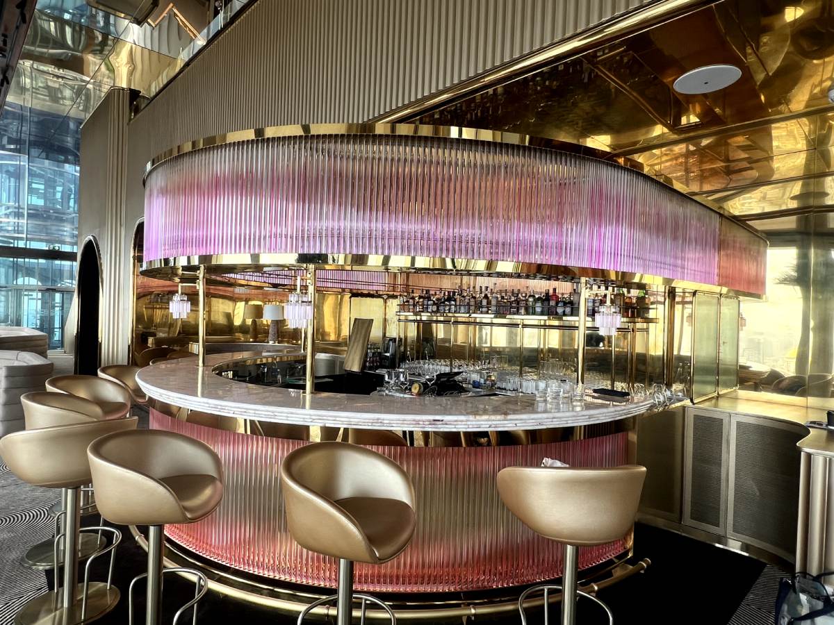 เพิ่มความหรูหราและทำให้ร้านอาหารมีเอกลักษณ์โดดเด่นด้วยการใช้สแตนเลสสีทองพื้นผิวด้านและสีทองพื้นผิวเงาในการตกแต่งผนัง เคาน์เตอร์ และเฟอร์นิเจอร์ภายในร้าน