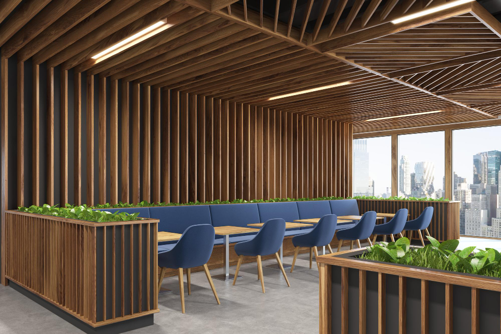 การตกแต่งร้านด้วยไม้หรือไม้ไผ่จะให้ความรู้สึกเป็นธรรมชาติ เรียบง่าย ผ่อนคลาย ซึ่งนิยมตกแต่งคู่กับต้นไม้ แจกันดอกไม้ และเฟอร์นิเจอร์โทนสีอ่อนเพื่อความสบายตา นอกจากนี้ ร้านอาหารที่ตกแต่งด้วยไม้ยังให้บรรยากาศที่เป็นกันเองอีกด้วย