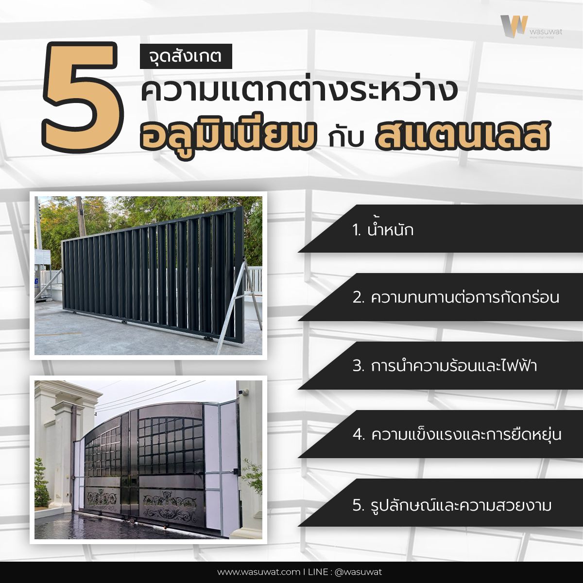 การเลือกใช้อลูมิเนียมหรือสแตนเลส ควรคำนึงถึงคุณสมบัติและสภาพแวดล้อมในการใช้งานเพื่อให้ได้ประสิทธิภาพสูงสุด วัสดุทั้งสองชนิดมีข้อดีที่ตอบโจทย์งานแต่ละประเภทอย่างเฉพาะตัว หากสถาปนิกหรือผู้รับเหมาเลือกใช้วัสดุที่เหมาะสม ก็จะทำให้การประยุกต์ใช้งานนั้นเกิดประสิทธิภาพสูงสุด