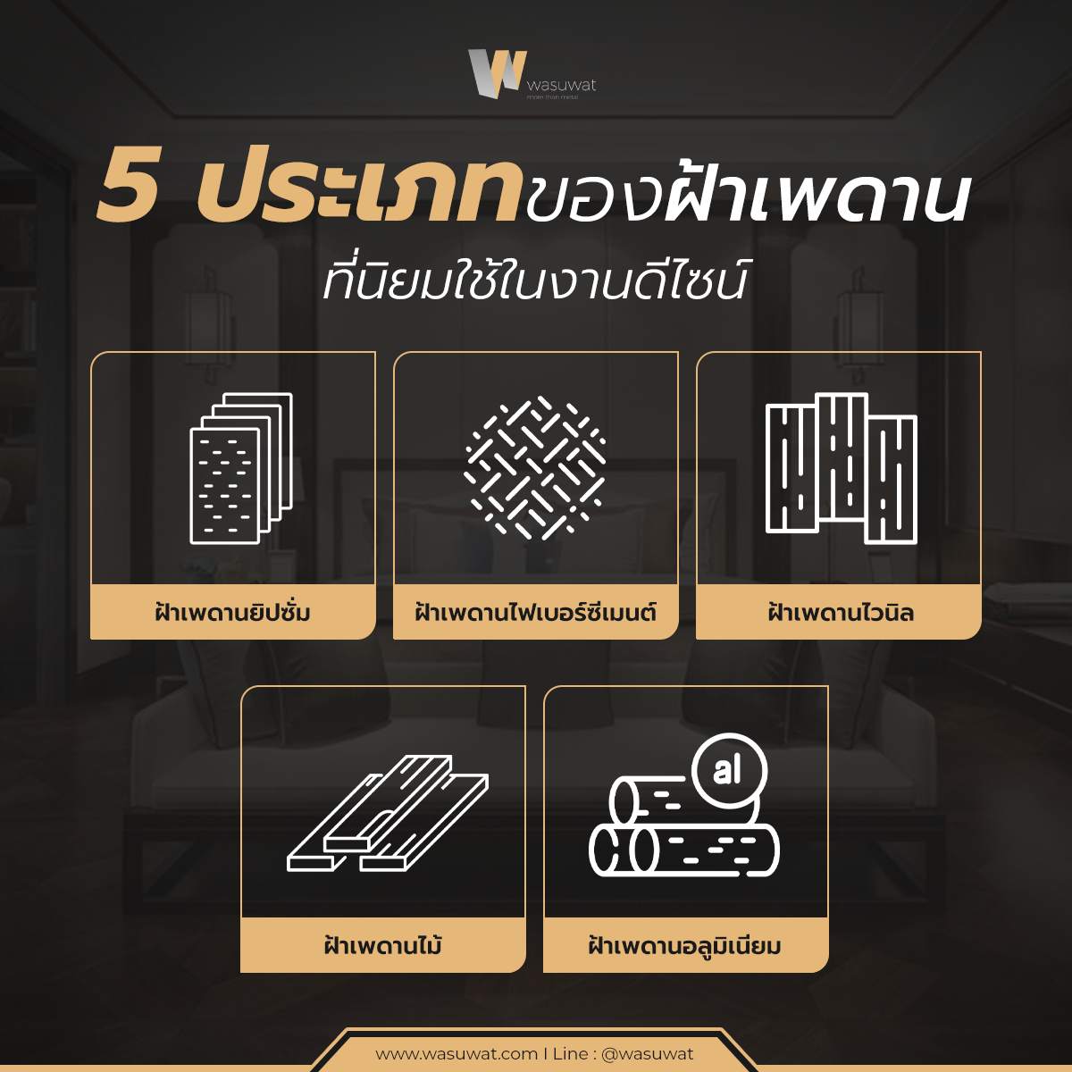 ฝ้าเพดานมีหลายประเภท แต่ละแบบก็มีลักษณะเด่นและคุณสมบัติที่เหมาะกับ’านดีไซน์ในสไตล์ต่าง ๆ ขึ้นอยู่กับความต้องการและการใช้งาน เช่น ฝ้าเพดานแผ่นยิปซั่มให้ลุคเรียบง่าย ฝ้าไม้เพิ่มความอบอุ่น หรือฝ้าไวนิลที่ดูแลรักษาง่าย ดังนั้น การเลือกฝ้าเพดานจึงควรคำนึงถึงทั้งความสวยงาม ฟังก์ชันการใช้งาน และความเหมาะสมกับพื้นที่ เพื่อให้บ้านดูดีและใช้งานได้อย่างคุ้มค่าที่สุด Wasuwat ขอแชร์ 5 ประเภทของฝ้าเพดานที่ได้รับความนิยมในงานตกแต่งบ้านหรืออาคาร