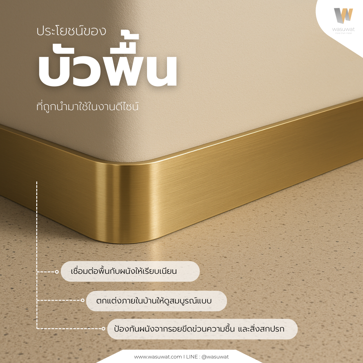 - บัวพื้นสแตนเลส หรูหรา ทนทาน ไม่เป็นสนิม เหมาะกับบ้านสมัยใหม่หรืออาคารพาณิชย์ ออฟฟิศสำนักงานที่ต้องการความพรีเมียม