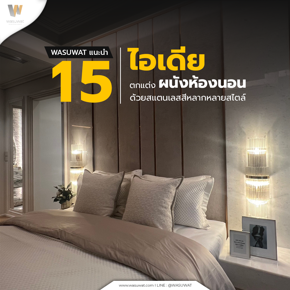 หากคุณกำลังมองหาบริษัทที่สามารถช่วยออกแบบ ติดตั้ง และผลิตวัสดุตกแต่งห้องนอนในสไตล์เรียบหรู — Wasuwat พร้อมเป็นตัวเลือกที่ตอบโจทย์ โดยทีมงานผู้เชี่ยวชาญมากประสบการณ์