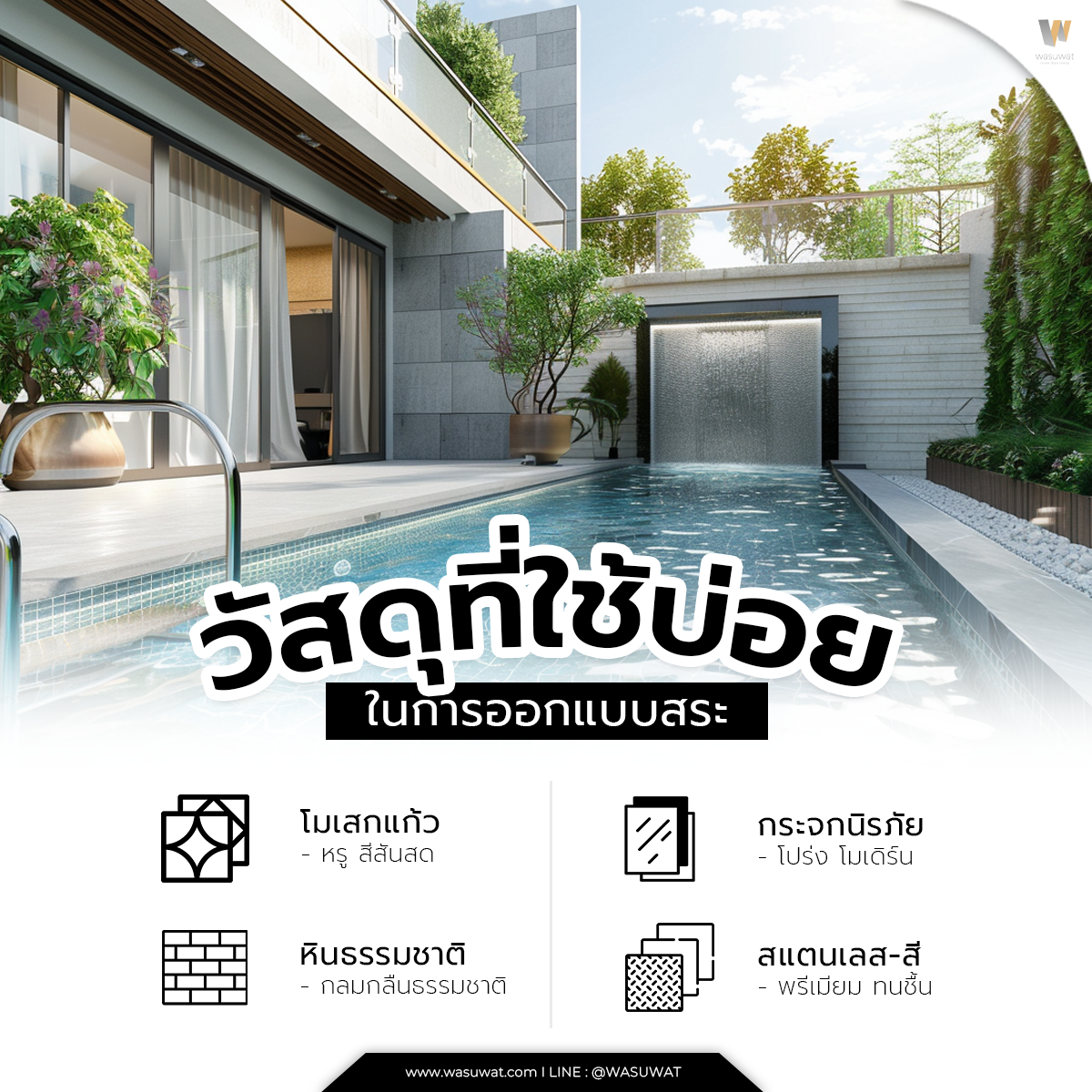 การออกแบบสระว่ายน้ำ คือการลงทุนที่ให้ผลตอบแทนทั้งด้านมูลค่าและคุณภาพชีวิต ไม่ว่าจะเป็นบ้านส่วนตัว รีสอร์ต หรือโครงการเชิงพาณิชย์ การเลือกวัสดุและดีไซน์ที่เหมาะสมจะทำให้สระเป็นมากกว่าที่พักผ่อน แต่คือศูนย์กลางของความสุขและสุนทรียภาพ และหากคุณมองหาวัสดุพรีเมียมสำหรับงานนี้ Wasuwat คือคำตอบที่มั่นใจได้ในคุณภาพและดีไซน์